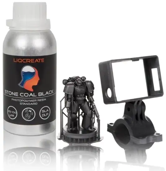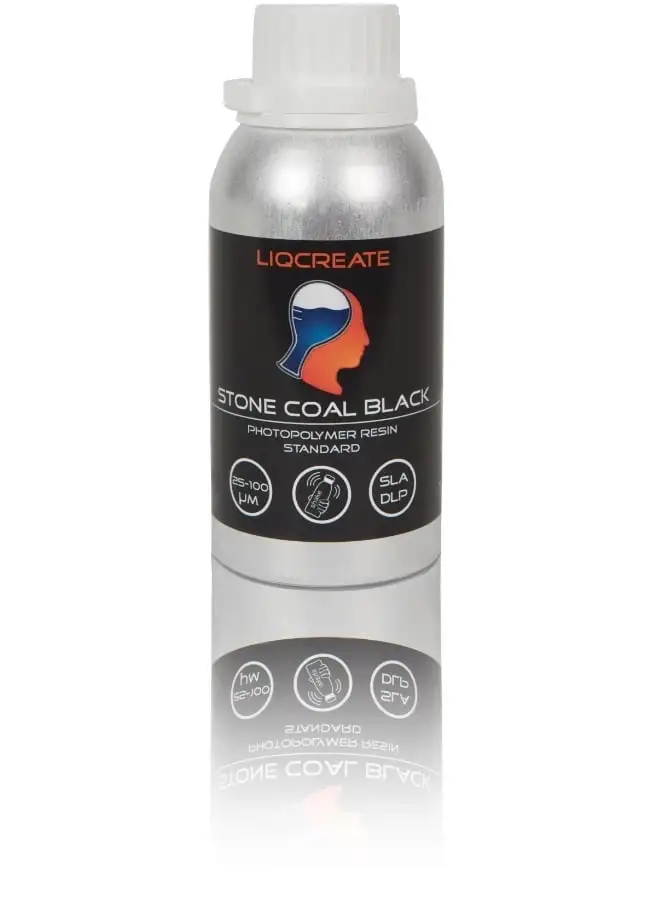 Liqcreate Stone Coal Black is an opaque, high-resolution general-purpose photopolymer for SLA and DLP 3D printers in the range of 385 – 405nm. The polymer has an incredibly smooth surface that highlights the smallest details.