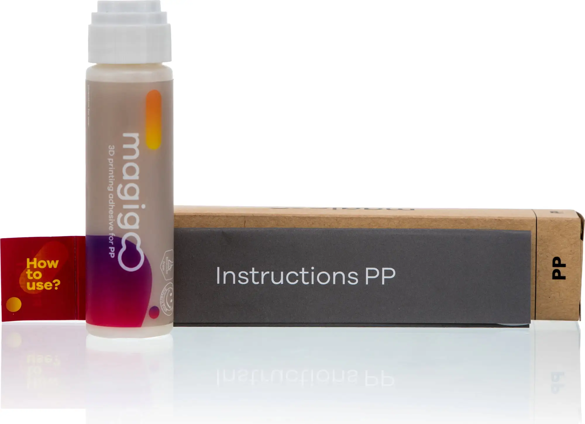 MAGIGOO PP is designed for professional use to work exclusively with polypropylene filaments. The part is relatively easy to remove after cooling and the glue residue can also be easily removed.